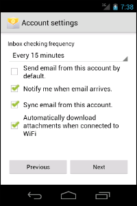 Tap Next to proceed to the next screen in the Account setup interface.